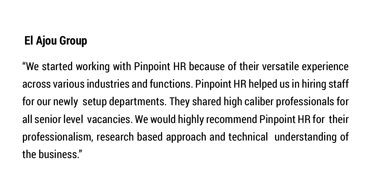 Established in 2008, Pinpoint HR is a talent management solutions provider offering executive human resource consulting and recruitment. Pinpoint HR specializes in providing exceptional consulting and advisory services on human capital to leading regional and international organizations.